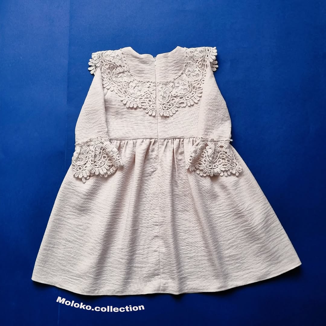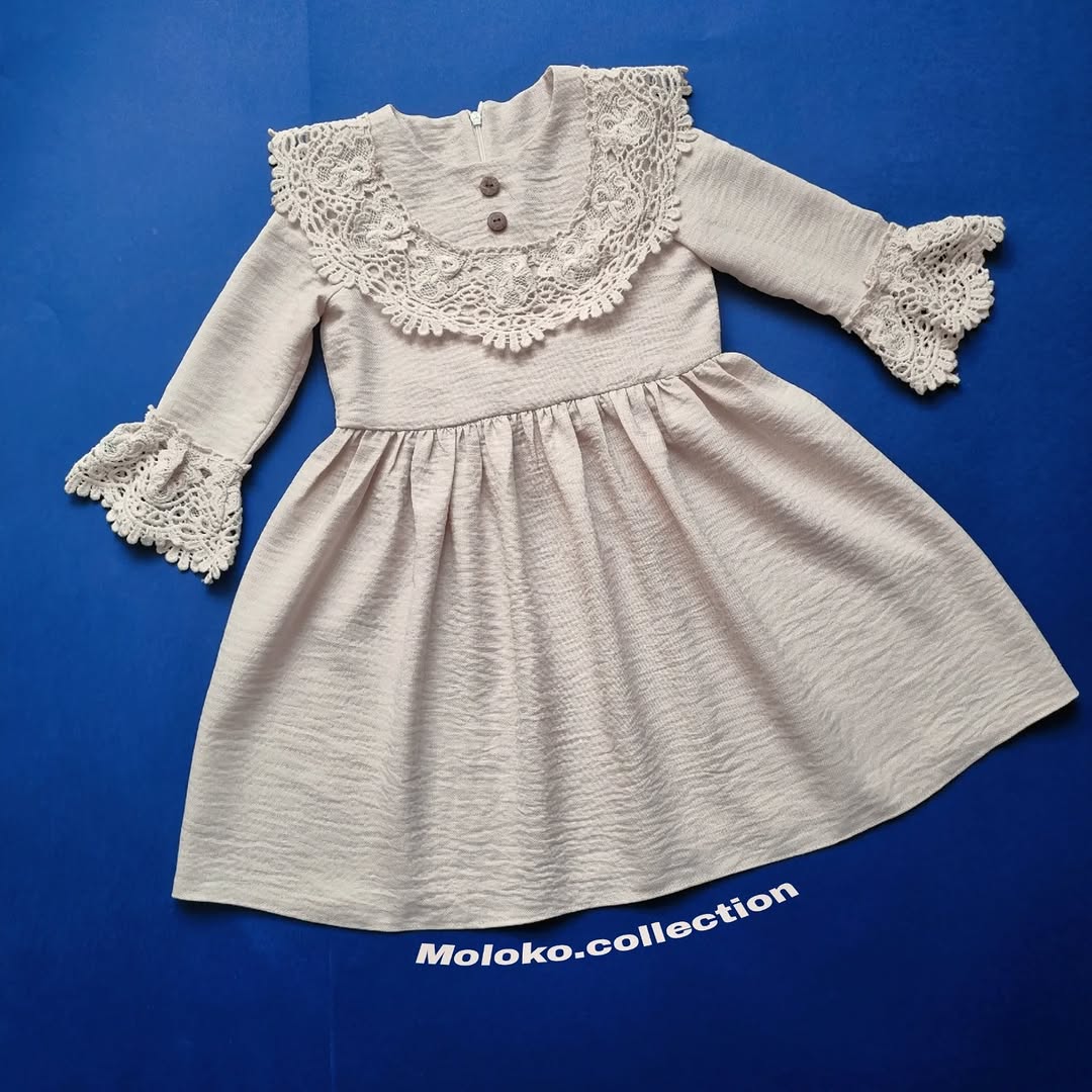 پیراهن شیک دختراته که در قسمت دوریقه تا پشت و در سرآستینها گیپور با کیفیت عالی کار شده و جنس پارچه لینن هستش